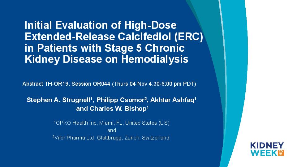 ASN Kidney Week 2021 Oral abstract presentation- Initial Evaluation of High-Dose Extended-Release Calcifediol (ERC) in Patients with Stage 5 CKD on Hemodialysis (HD) November 2021